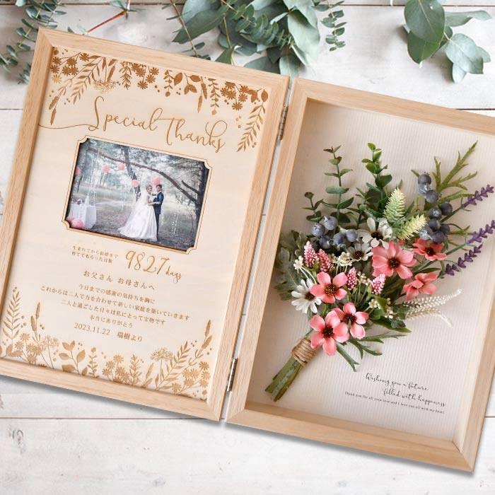 両親 プレゼント 結婚式 木製子育て感謝状 ボックスフレーム ブーケ リボンゴム付 選べるアレンジ Mb Bf Bouquet 結婚式グッズ ギフトのお店 Farbe 通販 Yahoo ショッピング